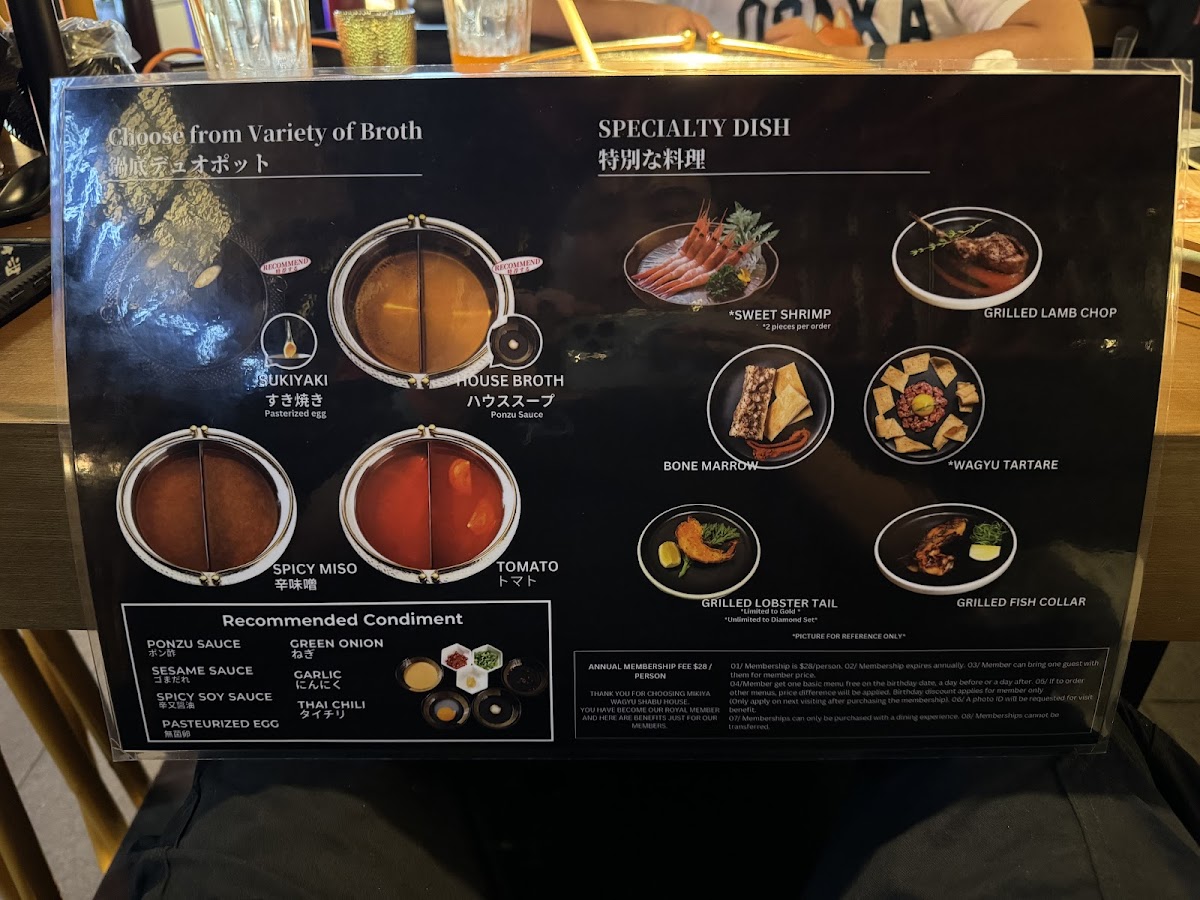 Welcome to Mikiya Wagyu Shabu House 味喜屋 Flushing, an exquisite hotpot destination located in the heart of Flushing, New York. The menu boasts an impressive selection of premium ingredients, including A5 Wagyu beef and fresh seafood, such as live lobsters. Diners can indulge in different broths, like flavorful sukiyaki or hearty tomato, enhancing each bite with its rich essence.